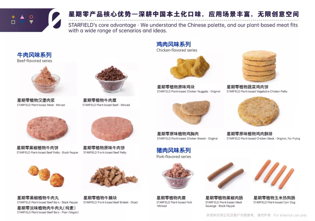 关于本轮融资后的规划,星期零表明将要点布局产研建造和实验室设备投入,不断探究植物蛋白技能的立异。现在,星期零现已可以在植物蛋白食物的质构和风味上做到立异性的打破。针对植物蛋白结构,进行连续式针织风味和精进酶法交联,到达模仿肌纤维的作用,发明出了具有整块肉纹路的“大师黑椒植物牛肉”,切入了火腿、牛肉片的商场。在滋味、口感上与闻名西餐食材帕斯雀牛肉(Beef Pastrami)挨近,但价格更具优势,差异同类产品,且不增加亚硝酸盐和任何防腐剂。“大师黑椒植物牛肉”以非转基因大豆为质料,真实做到了0胆固醇、0反式脂肪酸、高蛋白、低脂肪,统筹了甘旨与健康。