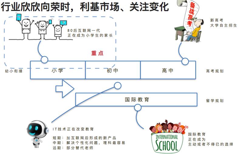 同是因为户籍的约束,一些一线城市的中产,不得不为子女挑选世界校园。曩昔几年世界校园的快速增加,使得世界校园数量达到了600多所。因为世界校园无法供给个性化的服务,也会带来一些新的创业机遇。